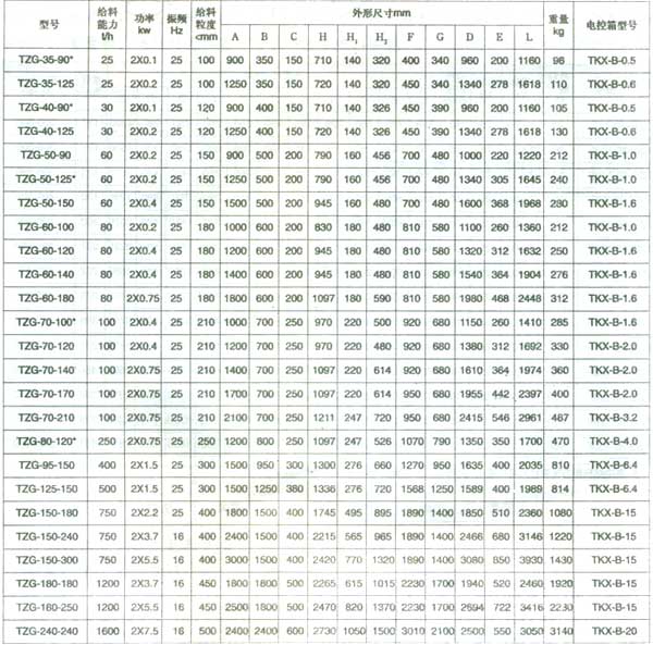 TZG系列給料機(jī)兩臺(tái)振動(dòng)電機(jī)的電源為三相380V,50Hz。